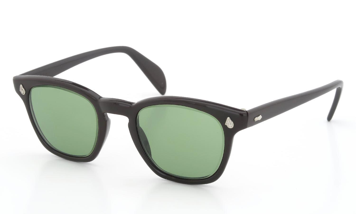 チョコレートブラウンの濃い色味と、オリジナルのAOロゴが国印されたガラス製グリーンレンズの組み合わせ。