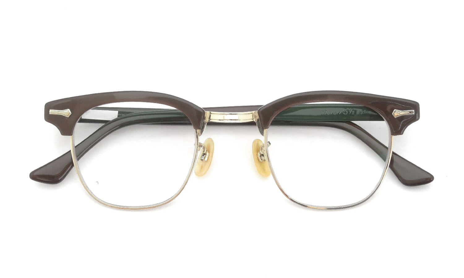SHURONは、1865年に光学眼鏡メーカーとしてアメリカで設立されたました。第二次大戦時に米国軍に光学製品を供給したことにより一躍有名になり、AO(アメリカンオプチカル)、B&L(ボシュロム)と合わせて、アメリカ3大メーカーの一つに数えられています。1947年に発表したブローラインのフレーム“RONSIR”は1950年代にはアメリカで一大ムーブメントを作る程に大流行しました。当時をモチーフにした映画やドラマなどでは必ず小道具の一つに加えられるアイテムの一つでもあります。