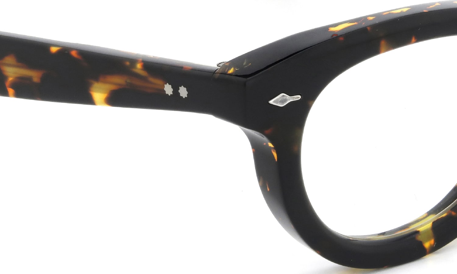 フロントの飾り鋲とテンプルのカシメ鋲はともにスターリングシルバー(925silver)。素材特有の経年変化がございます。