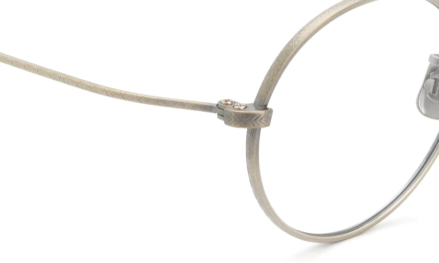 新たなパーツとして開発した割智は、レンズ止めネジとテンプル丁番ネジを縦に配列し、側面にチタンの板を補強した斬新なデザイン。