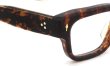 プロポーションとして縦幅を抑えた長方形シェイプのメガネ。