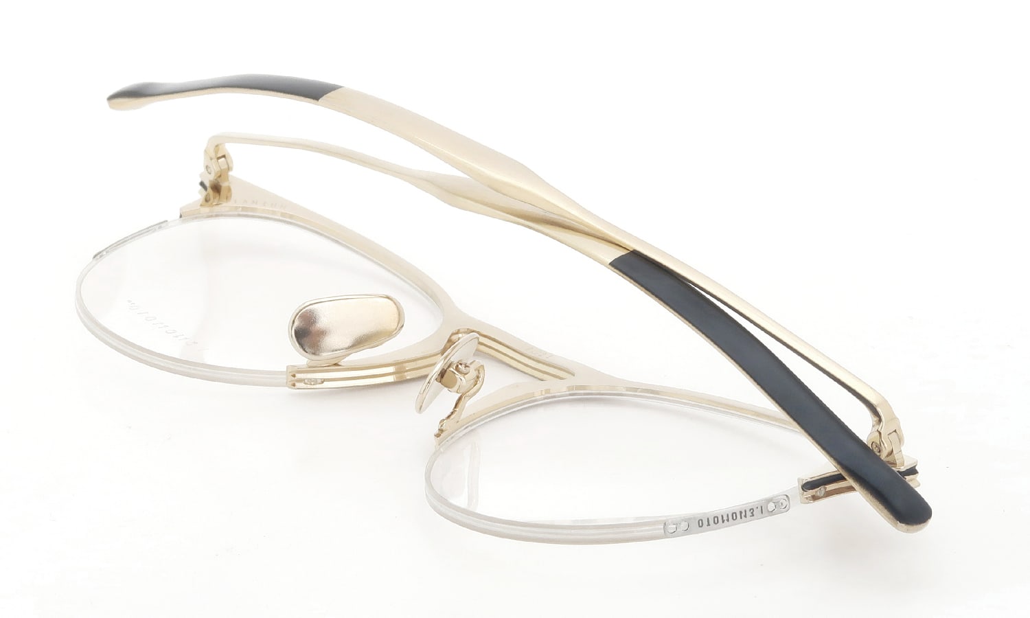 フロント・テンプルともに軽量で強靭・対アレルギー性に優れたチタン材によるオールメタルの造形。