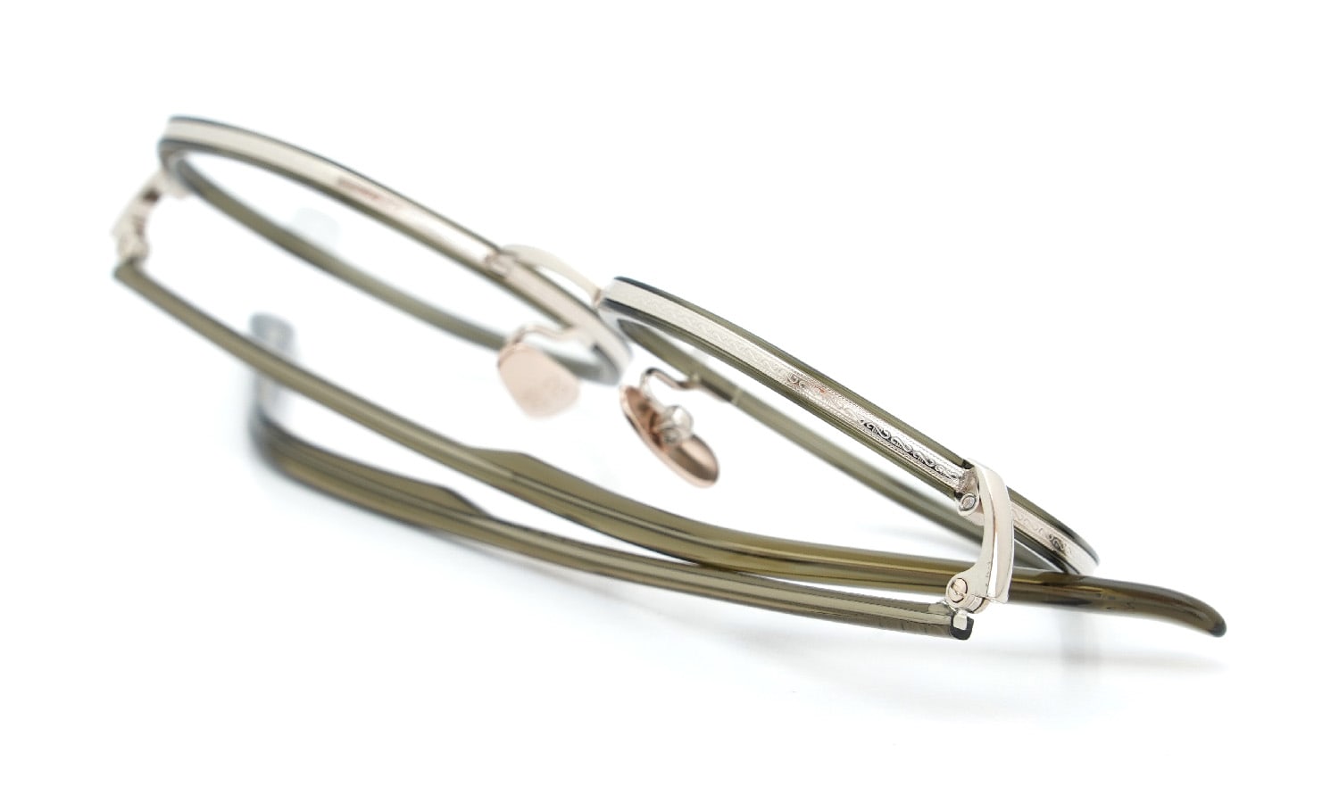 フロントリムの側面とテンプルの芯金は同じ唐草模様のパターンが採用されています。
