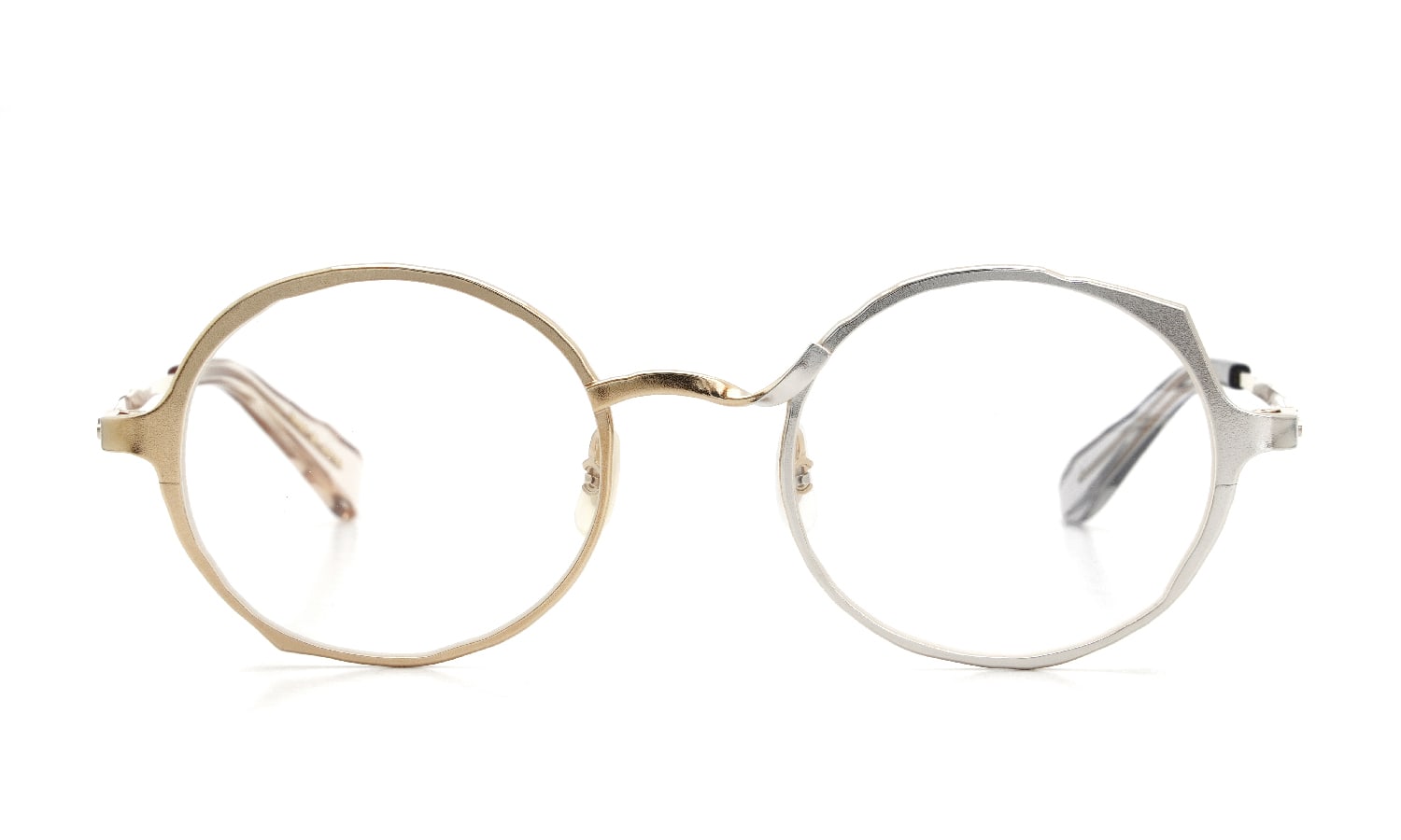 通常の完成されたプロダクトとは一線を画し、手で書いたラフデザインの要素をプロダクトに落とし込むことで生まれる未完成な造形が特徴で、見る人により、眼鏡、工芸品、アート作品など異なる認識で受けとめる魅力的なコレクションとなっております。何かと何かの間にある未完成に見えるラインを選び抜き、自然で美しいフォルムをもった眼鏡の提案です。