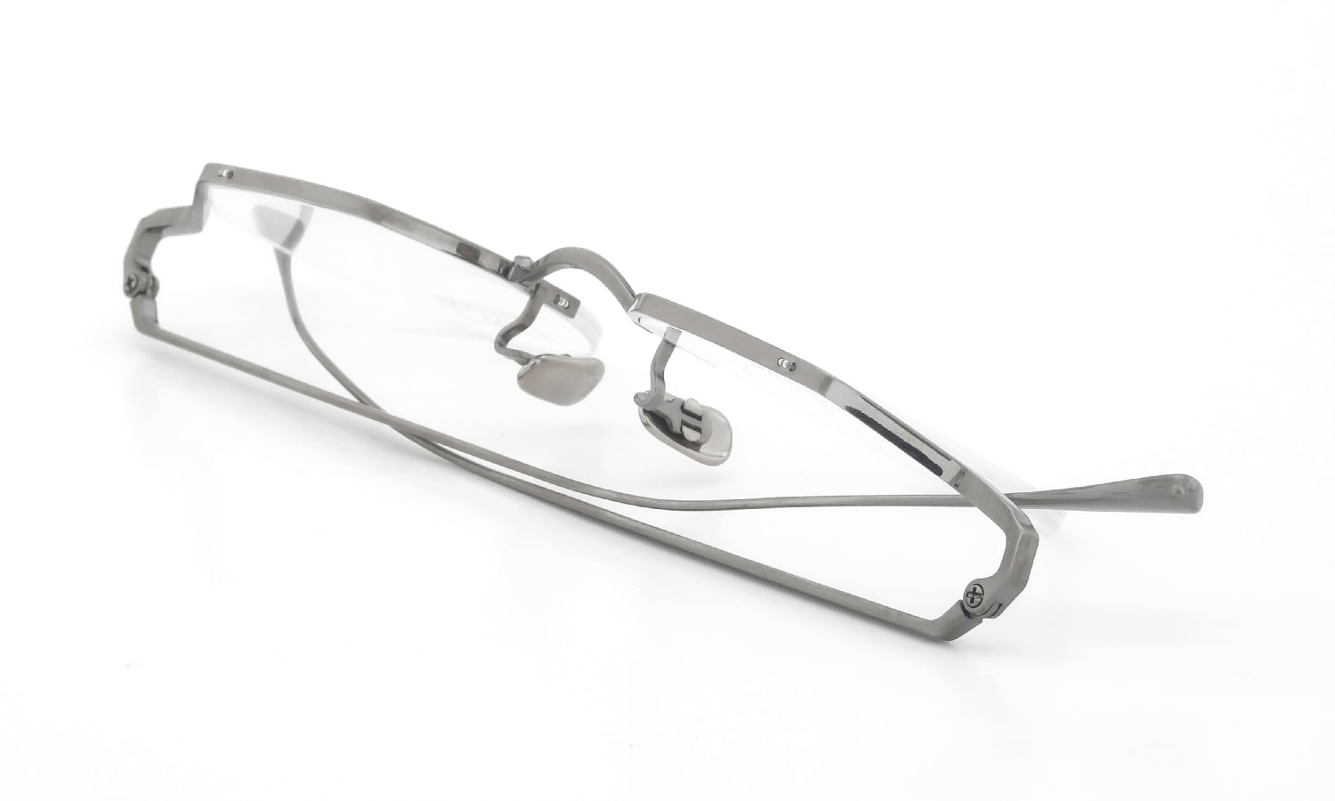 フロントからテンプルへ繋がる合口部分の立体感のあるフォルムが特徴的なオリジナリティのあるデザイン。