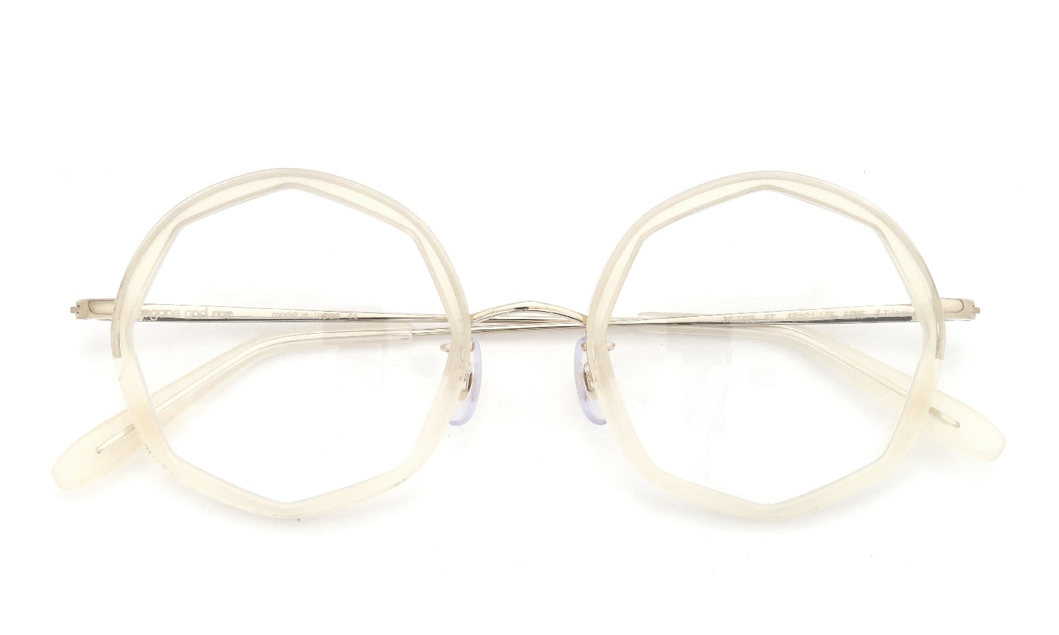 角を落とし気味にしたフレームシェイプと、角のエッジ感を残したレンズシェイプの組み合わせにより、幾何学的なポップさを落ち着いた雰囲気のあるメタルフレームが覆うという、華やかさと落ち着きの共存する大人なデザインになりました。