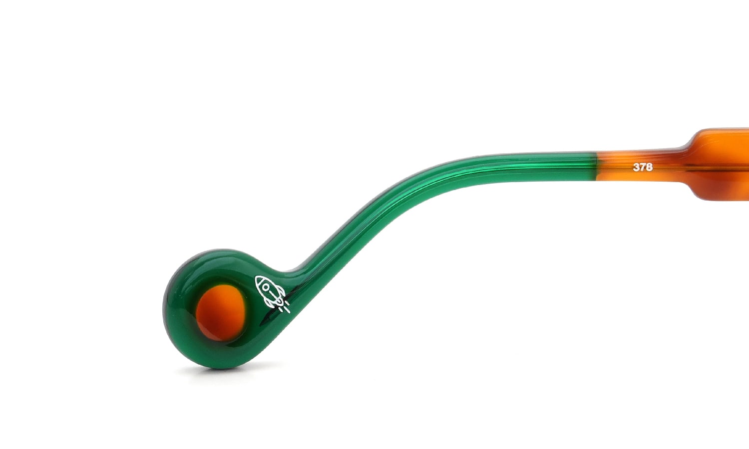 テンプルカラー:フロント側がHoney Havana、先端側がDark Greenの配色。