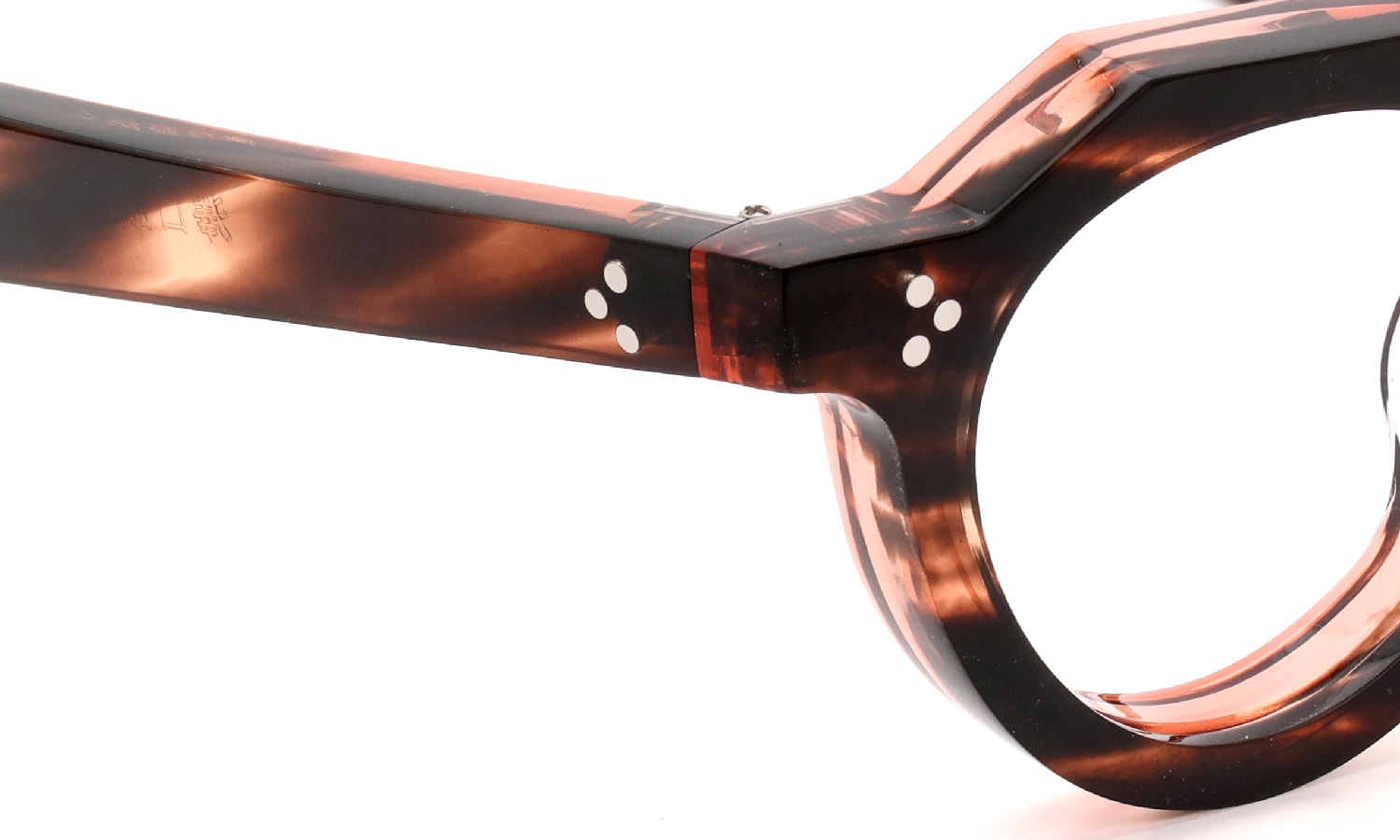 ポンメガネと澤口眼鏡舎 DUET celluloidメガネ Crown 9mm Ash Brown Sasa / Flesh Pink 詳細画像