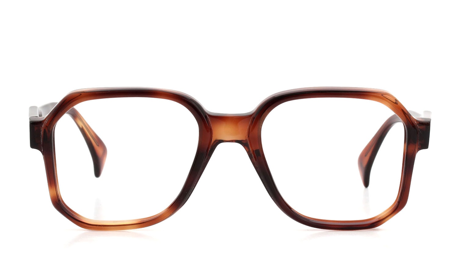 テンプル側の上下リムに斜めのカットが施された処理が特徴のデザイン。
