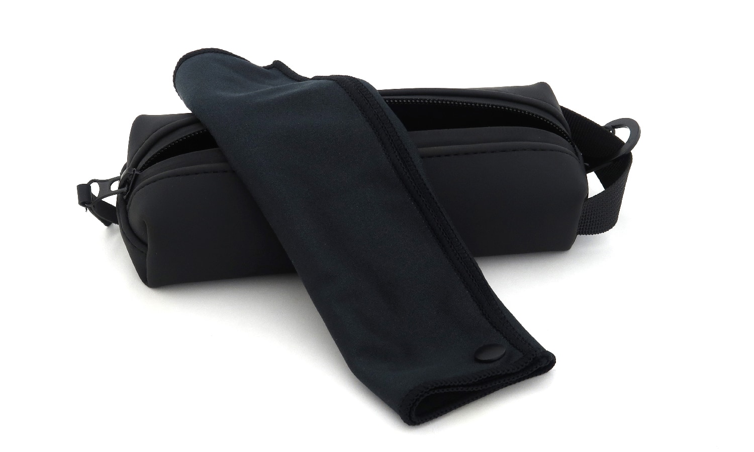 止水ジップを採用したミニマルなデザインの専用ケース。
