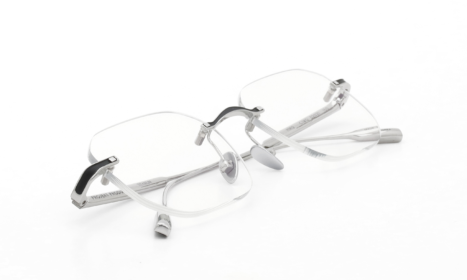 シンプルでややゆとりのあるモードなテイストの縁無しフレーム。