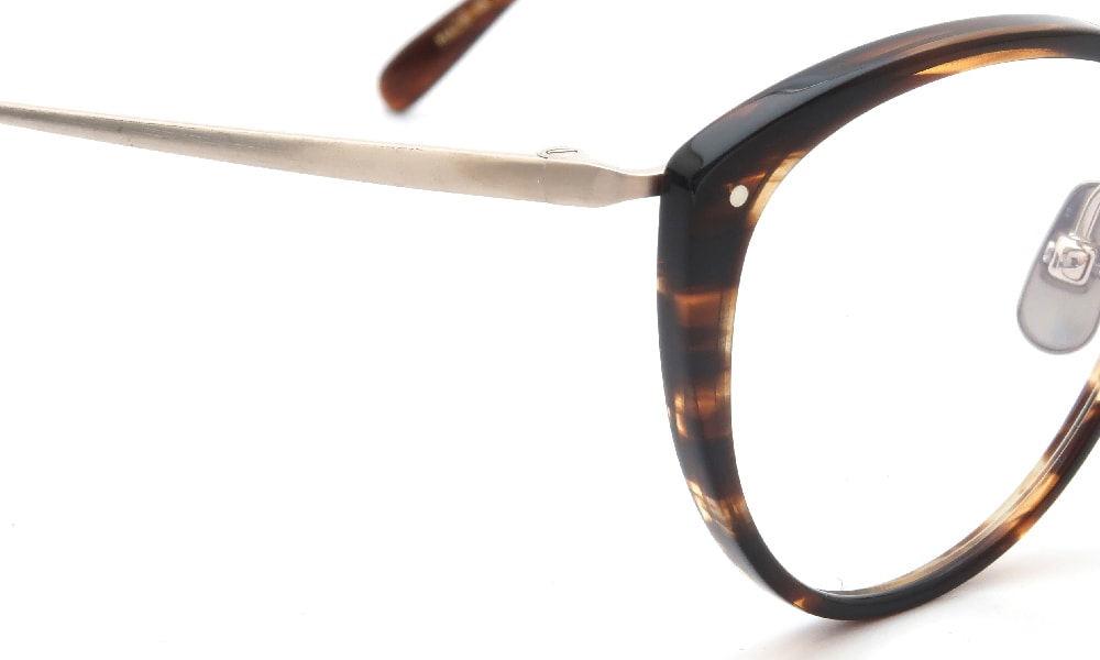 アセテート特有の存在感がありつつ、ソリッドなメタルテンプルと組み合わせることでシャープさが感じられます。