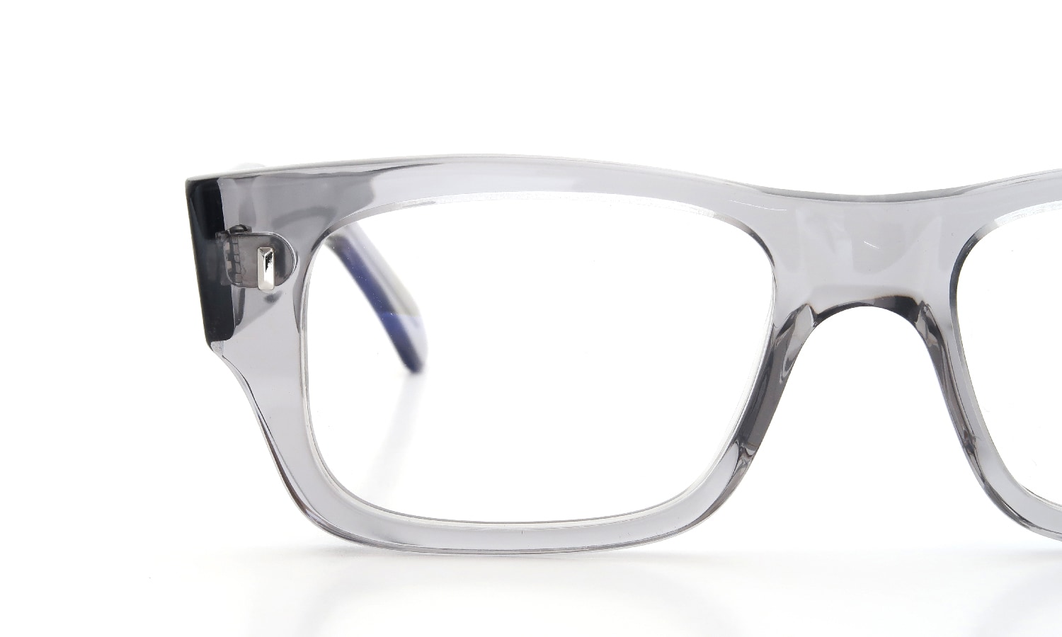 縦幅のあるテンプル、スクエアなレンズシェイプ、なだらかなブロウライン、キリっとしたフロント両端の処理。。