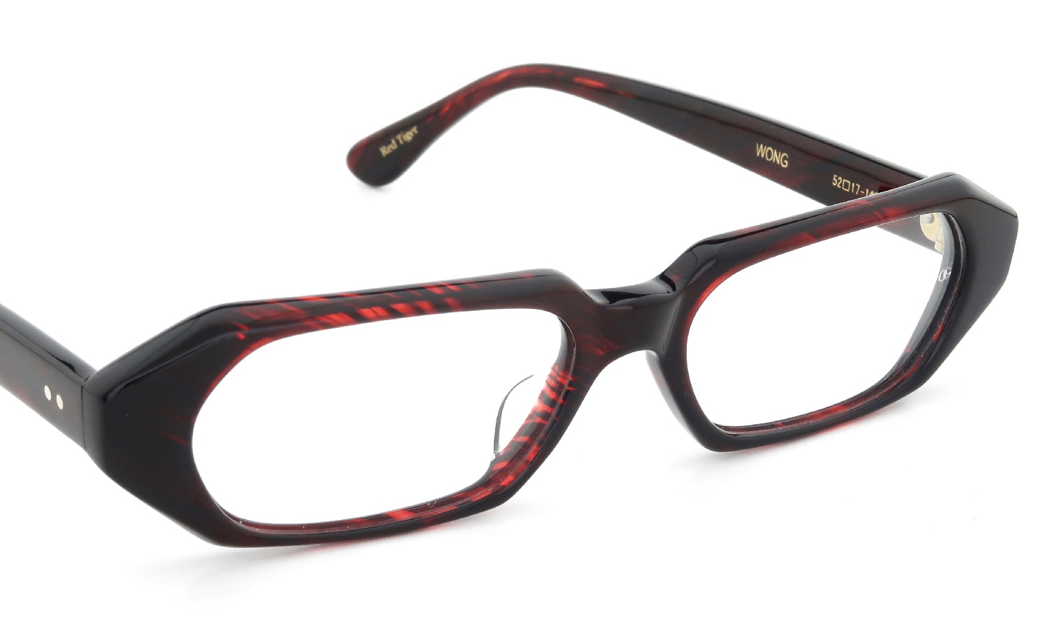 レンズは六角形に近い玉型ですのでフレームとレンズのシェイプの違いが水平に広がるような狭めの天地の高さとマッチしています。