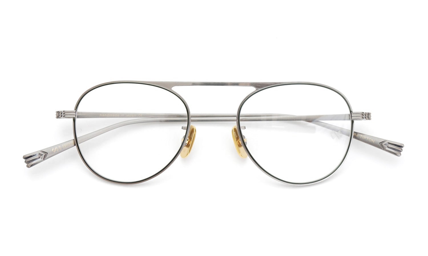 Col.030は、シルバーから一段明度が落ちたシャーリンググレーをベースに、レンズ周辺の段差を設けてリムにグリーンの極細七宝仕上げを施しています。