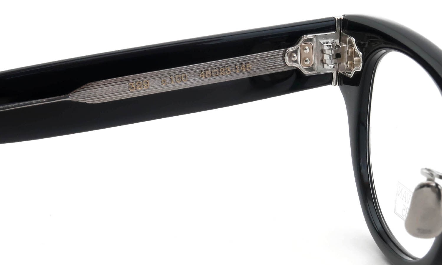 EYEVAN 7285のアイコン的パーツである60年代に製造されたMA-1(ミリタリーウェア)のジッパー部から着想を得た丁番の3PINヴァージョンを用いたモデル。極太のテンプルを支えるために3PINを用いながらも、PINの大きさを変えて丁番の面積を抑えるという0.1mm単位の配慮をした設計。