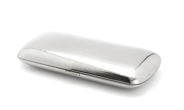 型押しのメタルケースの内側には鮮やかなブルーの生地が貼付けられています。