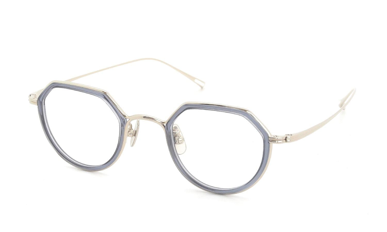 COL.02はアセテート部分がクリアグレー、メタルが黄色味を抑えたホワイトゴールドの組み合わせです。