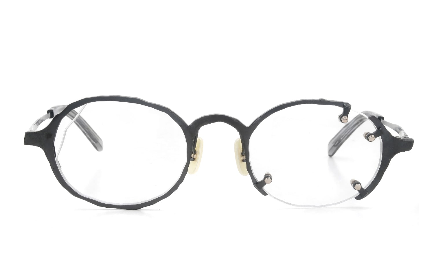 通常の完成されたプロダクトとは一線を画し、手で書いたラフデザインの要素をプロダクトに落とし込むことで生まれる未完成な造形が特徴で、見る人により、眼鏡、工芸品、アート作品など異なる認識で受けとめる魅力的なコレクションとなっております。何かと何かの間にある未完成に見えるラインを選び抜き、自然で美しいフォルムをもった眼鏡の提案です。