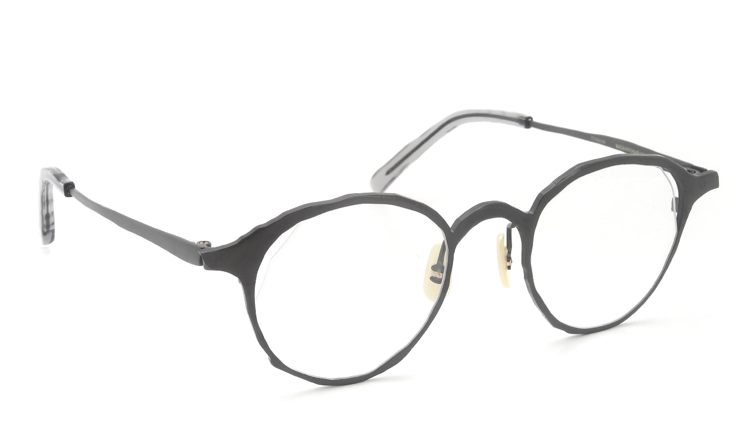 通常の完成されたプロダクトとは一線を画し、手で書いたラフデザインの要素をプロダクトに落とし込むことで生まれる未完成な造形が特徴で、見る人により、眼鏡、工芸品、アート作品など異なる認識で受けとめる魅力的なコレクションとなっております。何かと何かの間にある未完成に見えるラインを選び抜き、自然で美しいフォルムをもった眼鏡の提案です。