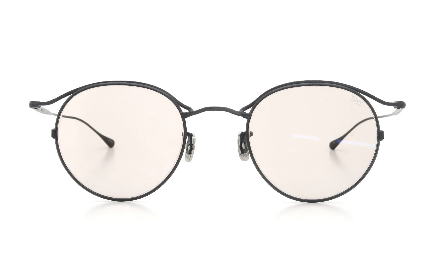 フロントのワタリとリム、テンプルはポインテッドの形状を用い、ブリッジとリムを繋ぐL字型のパーツとブローチに7285ストライプを施した。