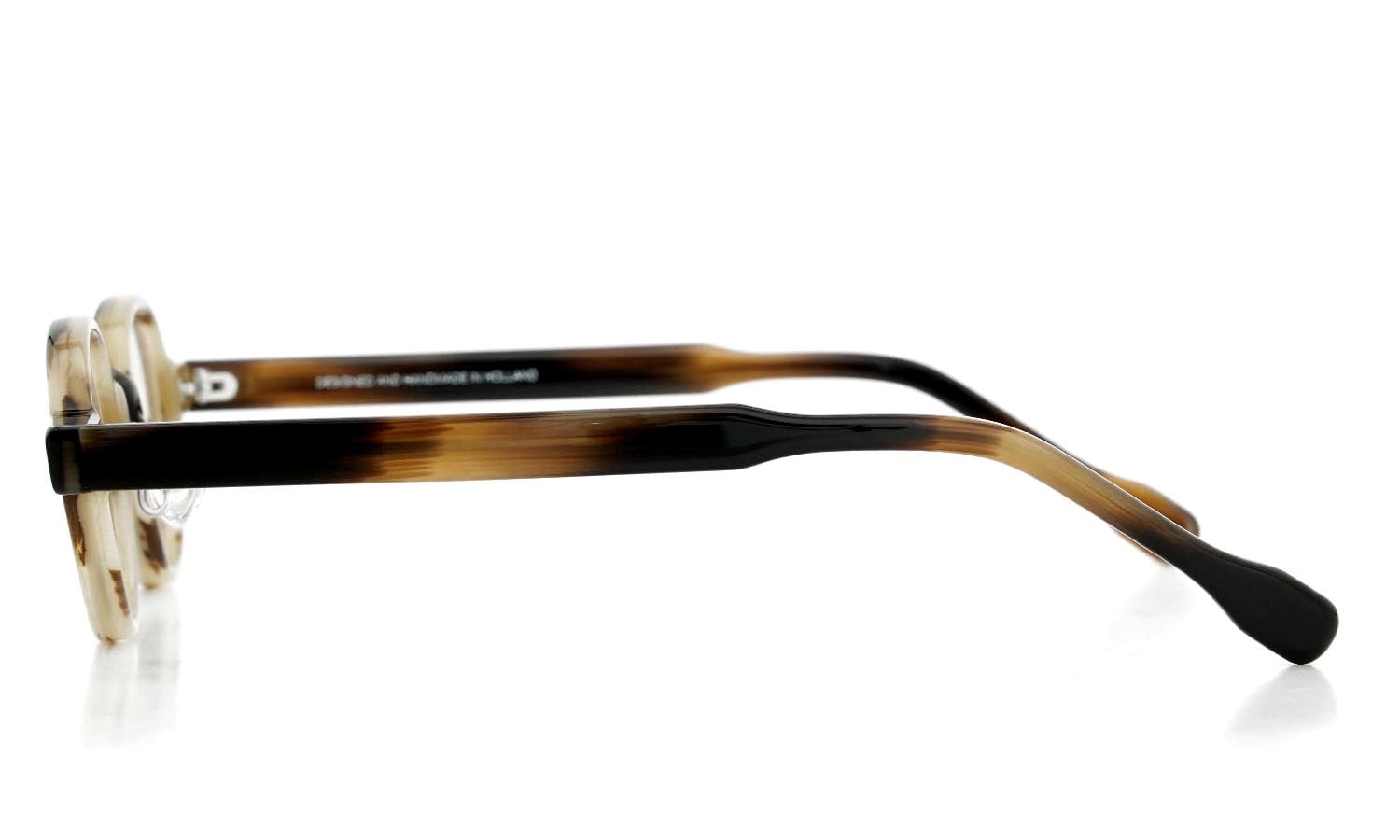 スクエアタイプのmod.705と同様に、細身のリムと小さなレンズ、シャープなエッジとホーンリムなど