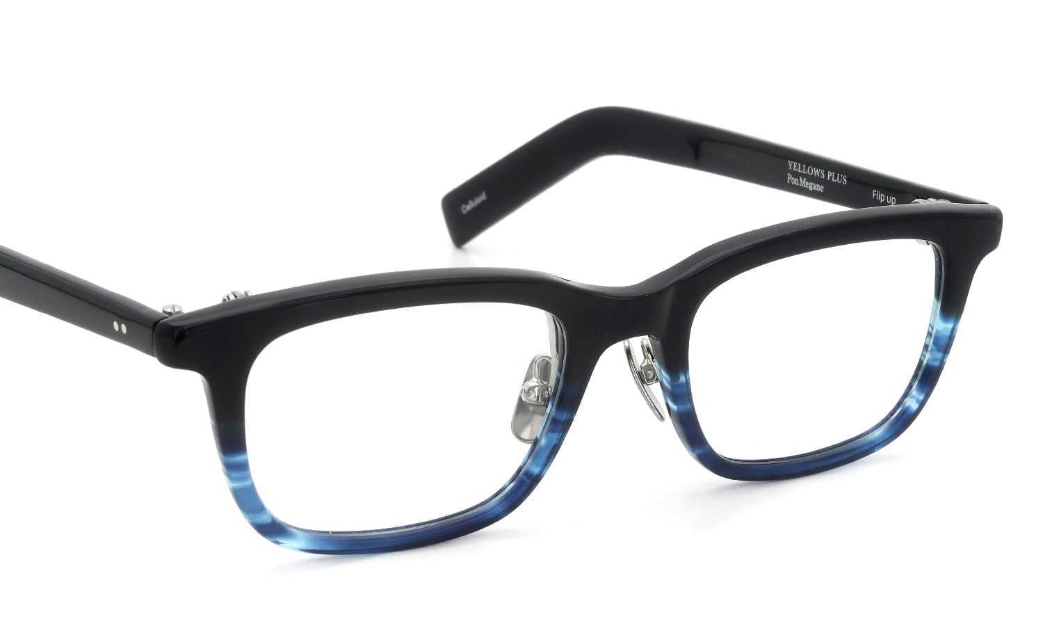YELLOWS PLUS for PonMegane 跳ね上げ式メガネ Flip up Celluloid Blue two tone モデル情報