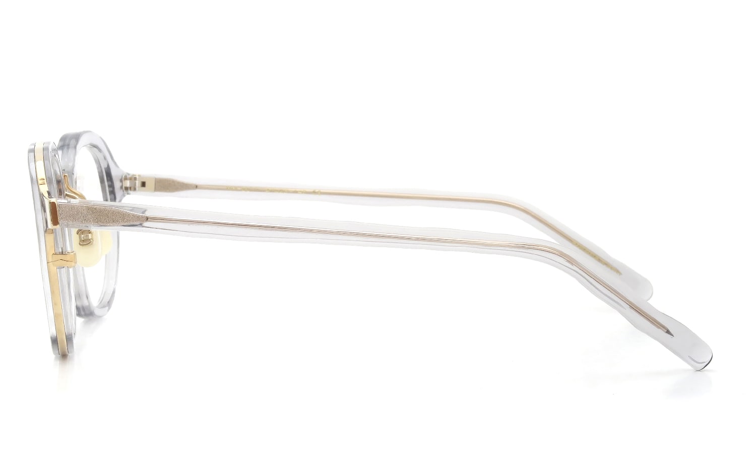 左フレームはメタルパーツがアセテートの外周に沿って配置されていたり、智のデザインも左右でメタルとアセテートに分けるなど、視覚的により複雑な構成へと向かいます。
