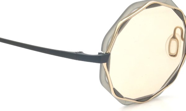 8角形のアセテート製インナーリムに、8角形のメタルリムを重ね合わせたサングラス。