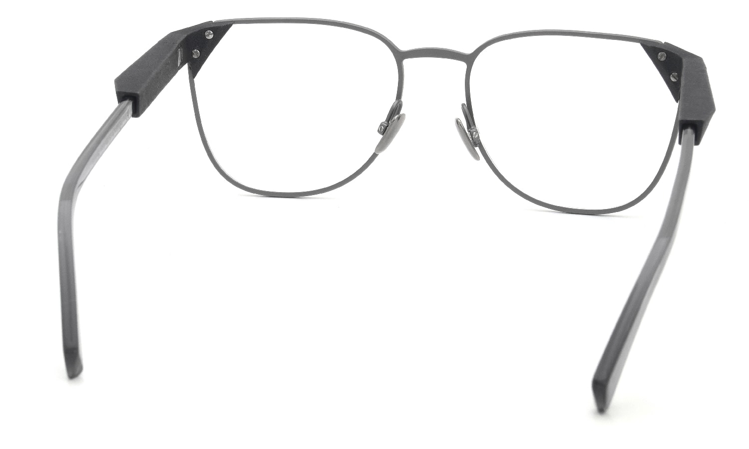 アセテートがフロント素材のフレームと同様に、金属ベースのフレームでも3Dのパーツが大変魅力的にうつります。