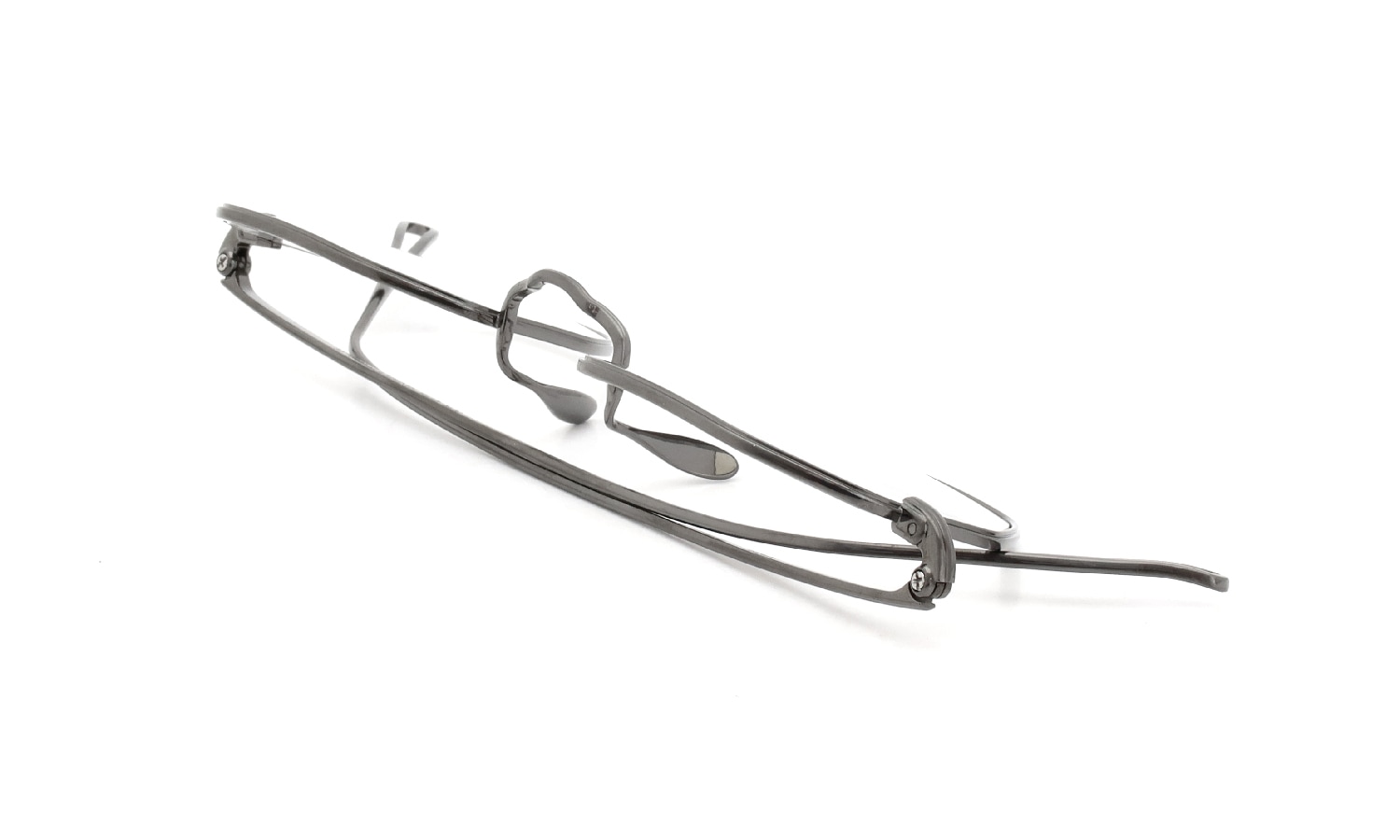 フロントリム、テンプルには、共通して段落ちのデザインがなされ、リムの細さを引き立てています。