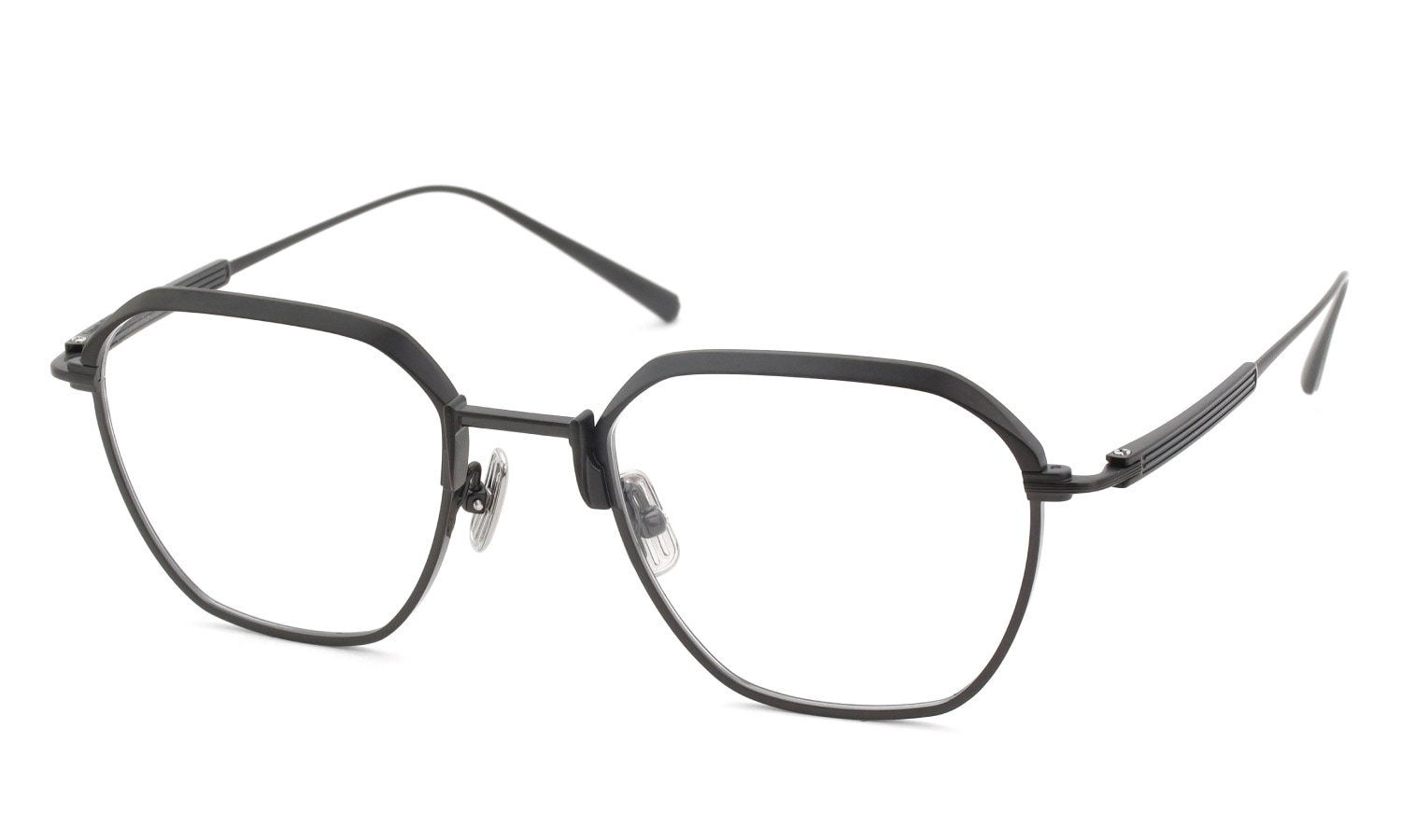 メタルカラー:ブラック(フロントブロウパーツからテンプルにかけてはややマット、リム下部は艶ありの仕上げ)
