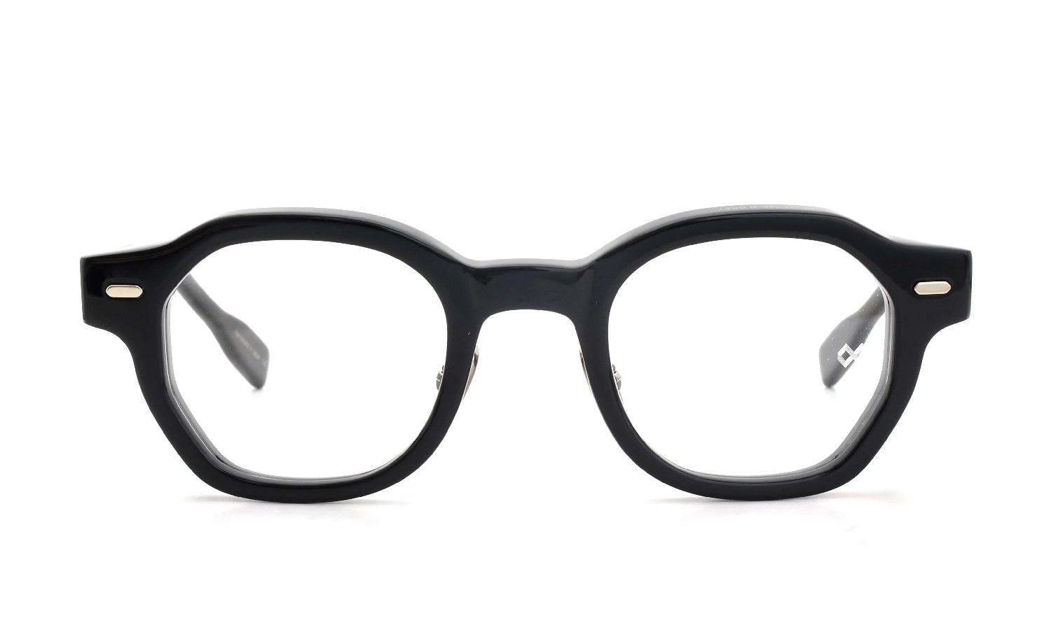 肉厚な生地を採用したフロントで、多角形のアセテートフレーム。