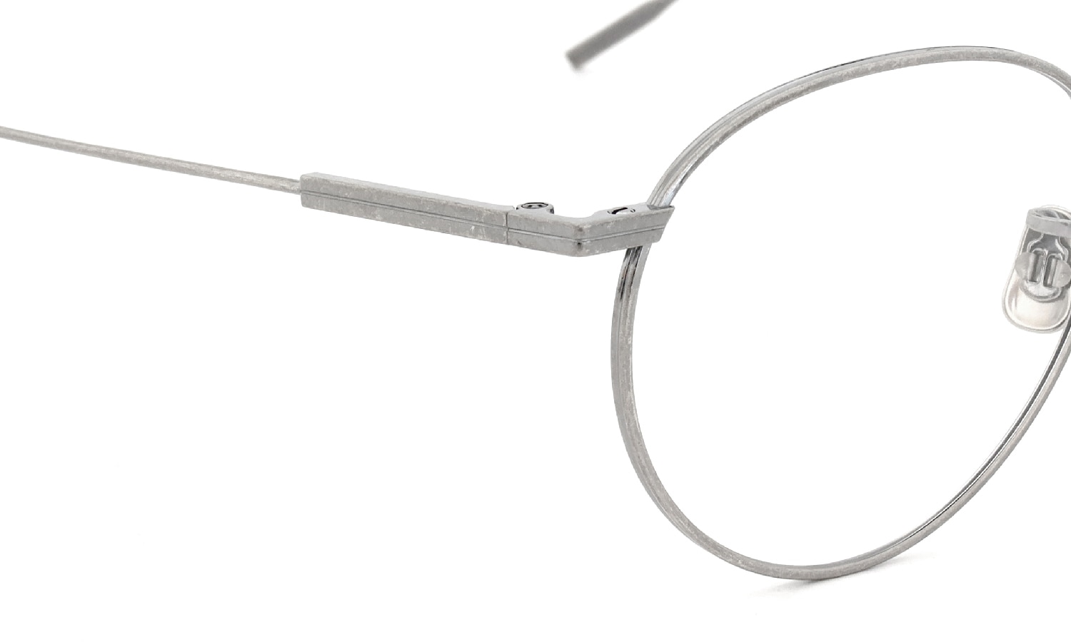前後それぞれ逆方向に張り出した上部ブリッジと下部ブリッジはワンピースで構成され、その製造難易度はブランド史上最も高いレベルを要した。精密で構築的なそれぞれのパーツが持つ緊張感に対し、やや大振りでリラックスした印象の玉型を合わせプロダクト全体の空気感を和らげた。