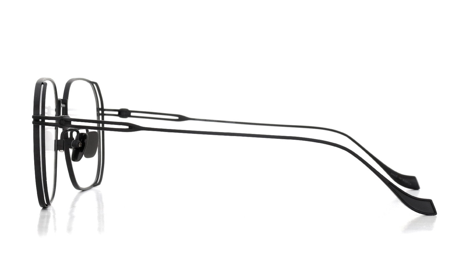 ヒンジやテンプルのメインエリアも並行する2本の線材を組み合わせて構成されているかのようです。