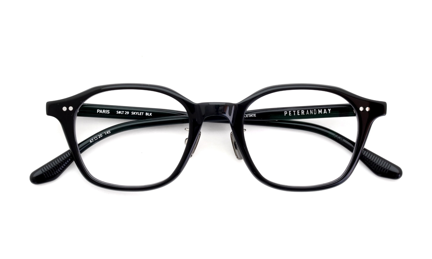 PETER AND MAY ピーターアンドメイ メガネ SKYLET 金属アームパット col.BLACK モデル情報
