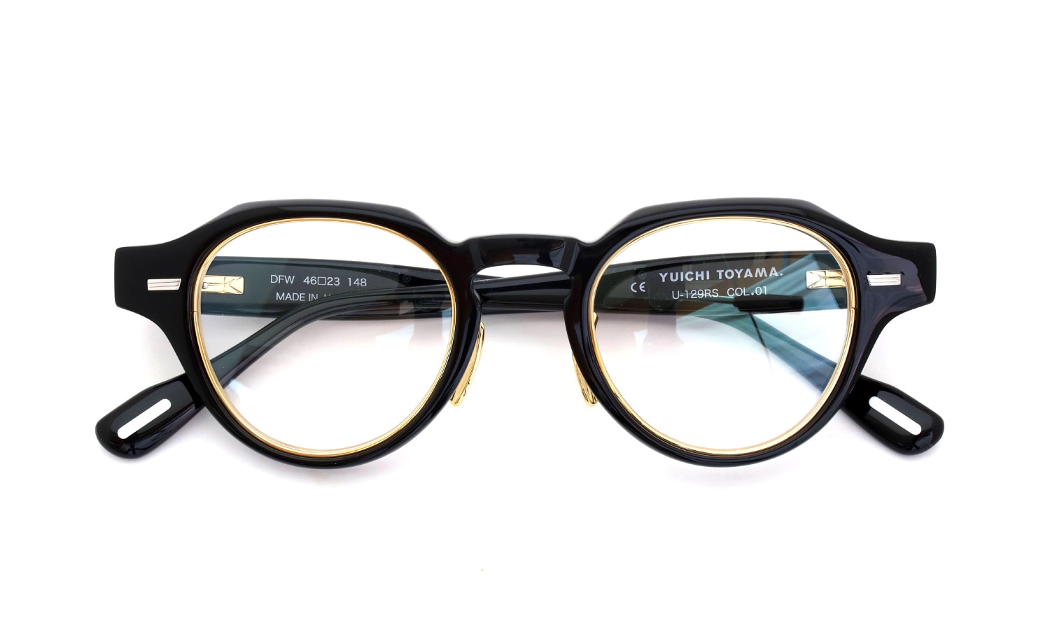 YUICHI TOYAMA. ユウイチ トヤマ 18th 最新作メガネ U-129RS DFW [col.01 Black / Gold 46□23 (取扱店:浦和)]