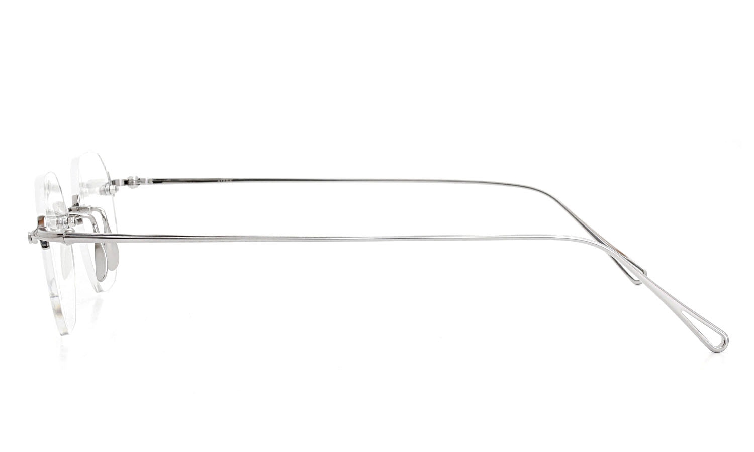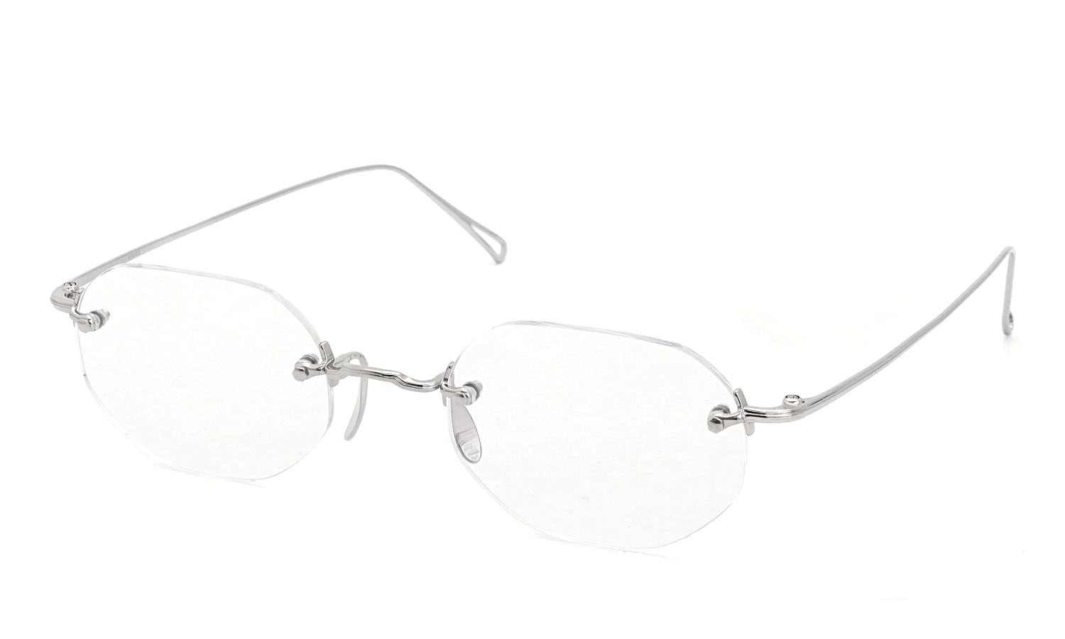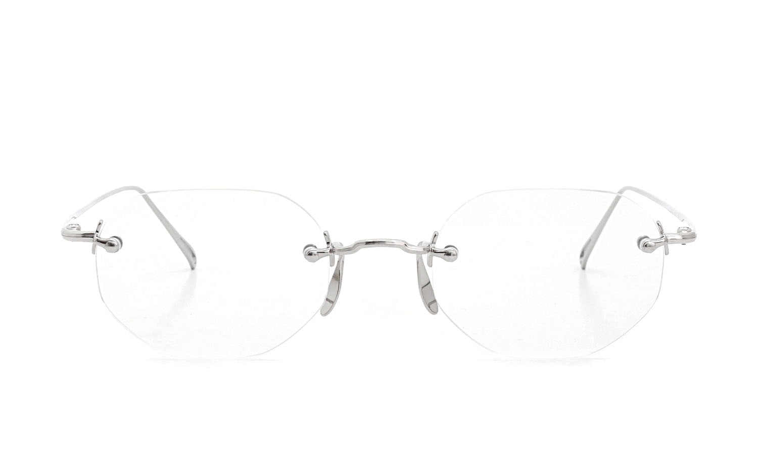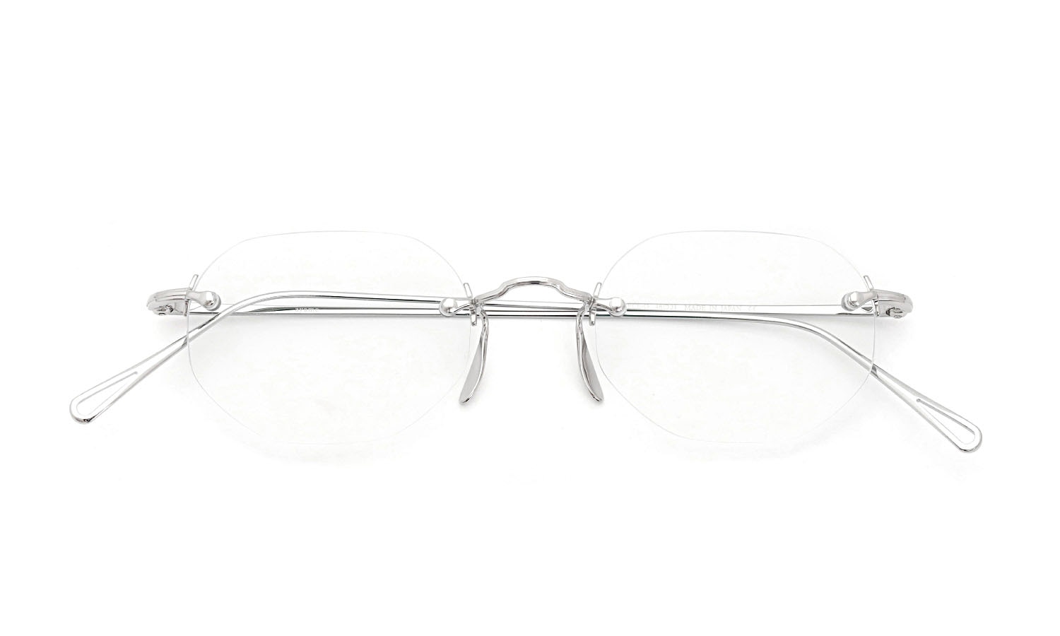 鼻上のブリッジとフレーム両端部に金属パーツがフワリと浮かぶような印象です。