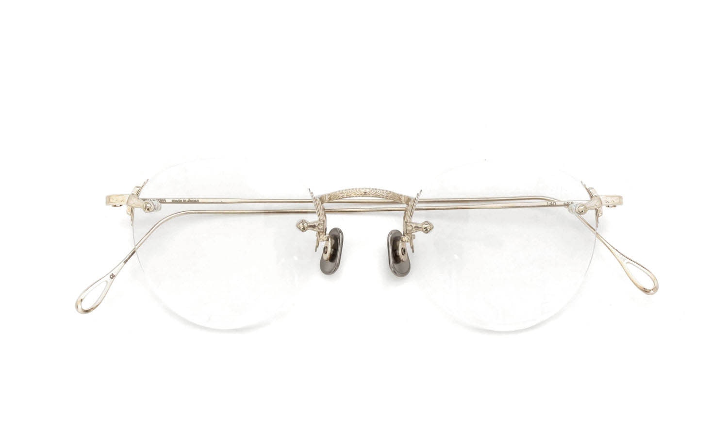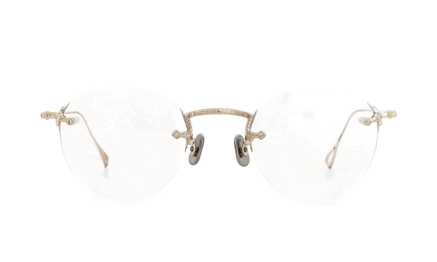 二つ目にヨロイの構成。アメリカンオプティカル社の1930年代のカタログに記載されている、レンズの回転と負荷分散を目的としたフレックスストラップを現代版にアップデートしています。1930年代に、ヨロイとレンズの間に1枚の金属板が挟まったDIA-FLEX-STRAPS(ディアフレックスストラップ)を発展させ、ヨロイとレンズの間に3枚の金属板が挟まった TRI-FLEX-STRAPS(トリフレックスストラップ)を生み出したAO社に対し、EYEVAN7285は2枚のチタン板を挟み込む構造としています。