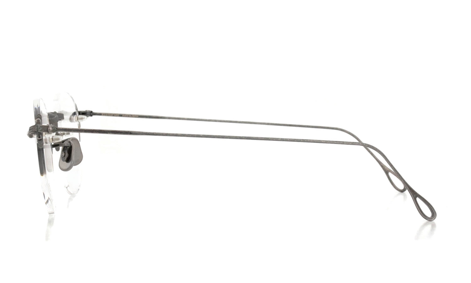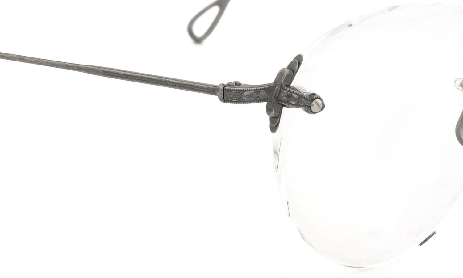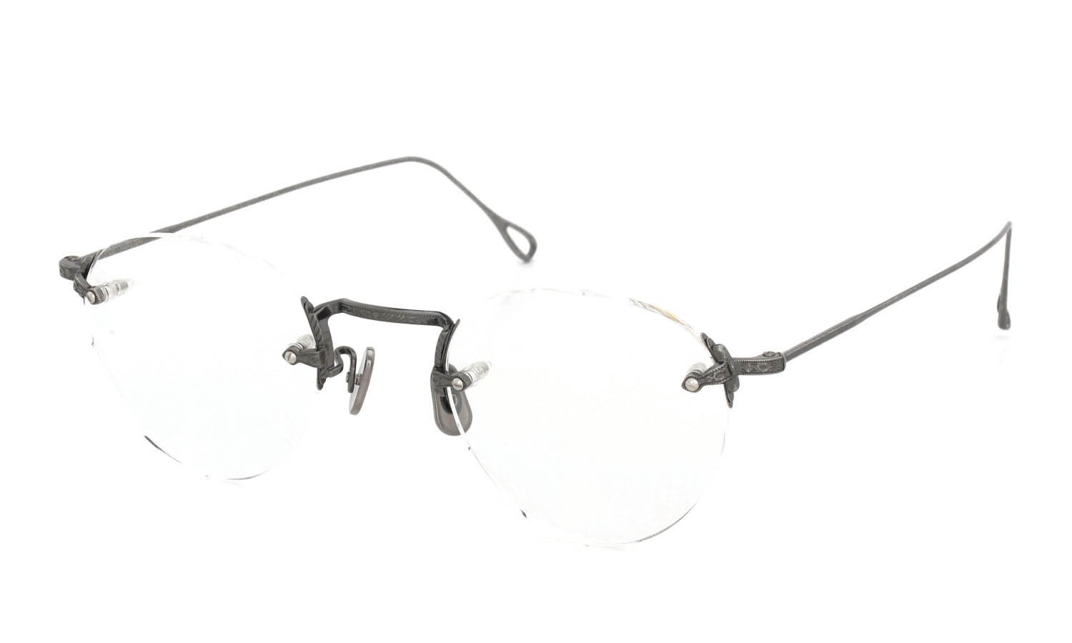 二つ目にヨロイの構成。アメリカンオプティカル社の1930年代のカタログに記載されている、レンズの回転と負荷分散を目的としたフレックスストラップを現代版にアップデートしています。1930年代に、ヨロイとレンズの間に1枚の金属板が挟まったDIA-FLEX-STRAPS(ディアフレックスストラップ)を発展させ、ヨロイとレンズの間に3枚の金属板が挟まった TRI-FLEX-STRAPS(トリフレックスストラップ)を生み出したAO社に対し、EYEVAN7285は2枚のチタン板を挟み込む構造としています。