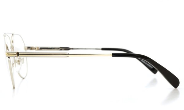 クラシックモードが得意のプロクシュ氏だけあって、クイッと眉間に切り込むようなレンズシェイプと直線的なブローバーのくみあわせがとても知的なデザインです。フレームの垂直面をマットシルバーに仕上げつつ、水平に配色されたシャンパンゴールドは艶のある仕上げにしたりと、細かな抑揚が効いてます。ティアドロップの最下点が一般的な物よりも少し内側に入っているため頬に当たり難く、かつ掛けこなしやすいサイズ感です。