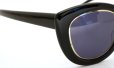 フォックスやキャットアイといったフレームシェイプにボストンに近い玉型のレンズが組合わさった色気のあるデザインです。プラスティックフレームの内側にメタルのリムが巻かれており、反射などによってそのラインが一瞬強調されて見えるなど独特の存在感が色気を感じさせます。