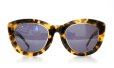 フォックスやキャットアイといったフレームシェイプにボストンに近い玉型のレンズが組合わさった色気のあるデザインです。プラスティックフレームの内側にメタルのリムが巻かれており、反射などによってそのラインが一瞬強調されて見えるなど独特の存在感が色気を感じさせます。