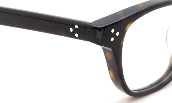 プレス情報によると、複数のアメリカンヴィンテージのフレームをデザインのベースとしているそうです。特にブリッジ周辺のブロウラインの落ち方や、フレームエンドが付き出すような形状になっているホーンリムを採用するなど、ディテールをみるとそれがわかります。