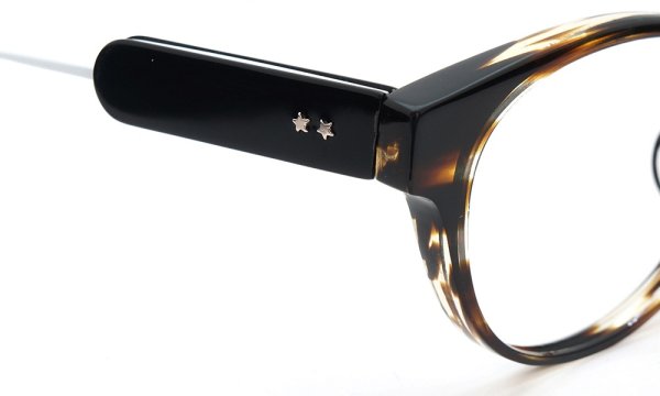 メタルがアセテート生地を挟み込むような独特の形状は、メガネアンドミーならではのポップさと