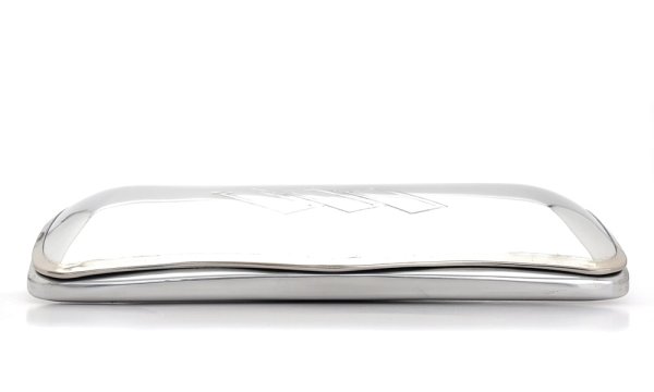 ソリッドな上面の中央に、菱形を三つ連ねたシンプルな図形をプレスによって浮き立たせたデザイン。