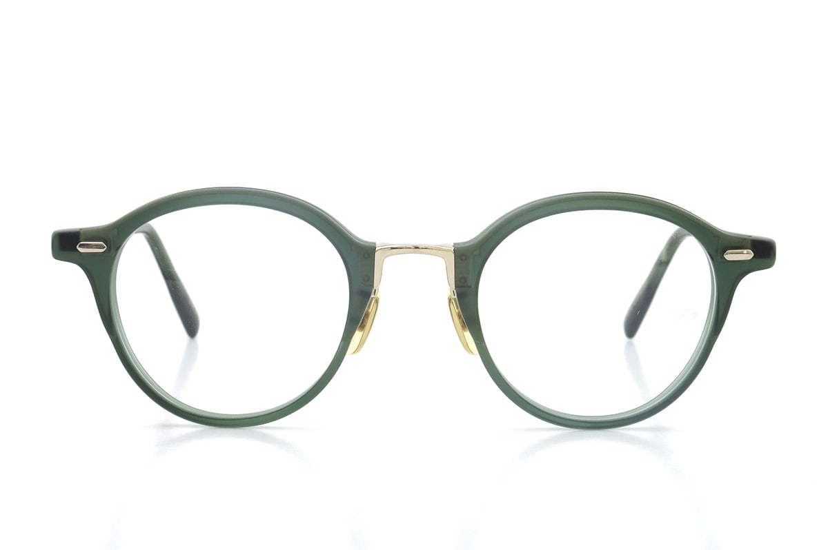 Col.114-2はアセテートがマットグリーン、メタルはゴールドのコンビネーションです。落ち着いたクラシカルなグリーンをマットで仕上げることで、キツい印象を与えないようデザインされています。