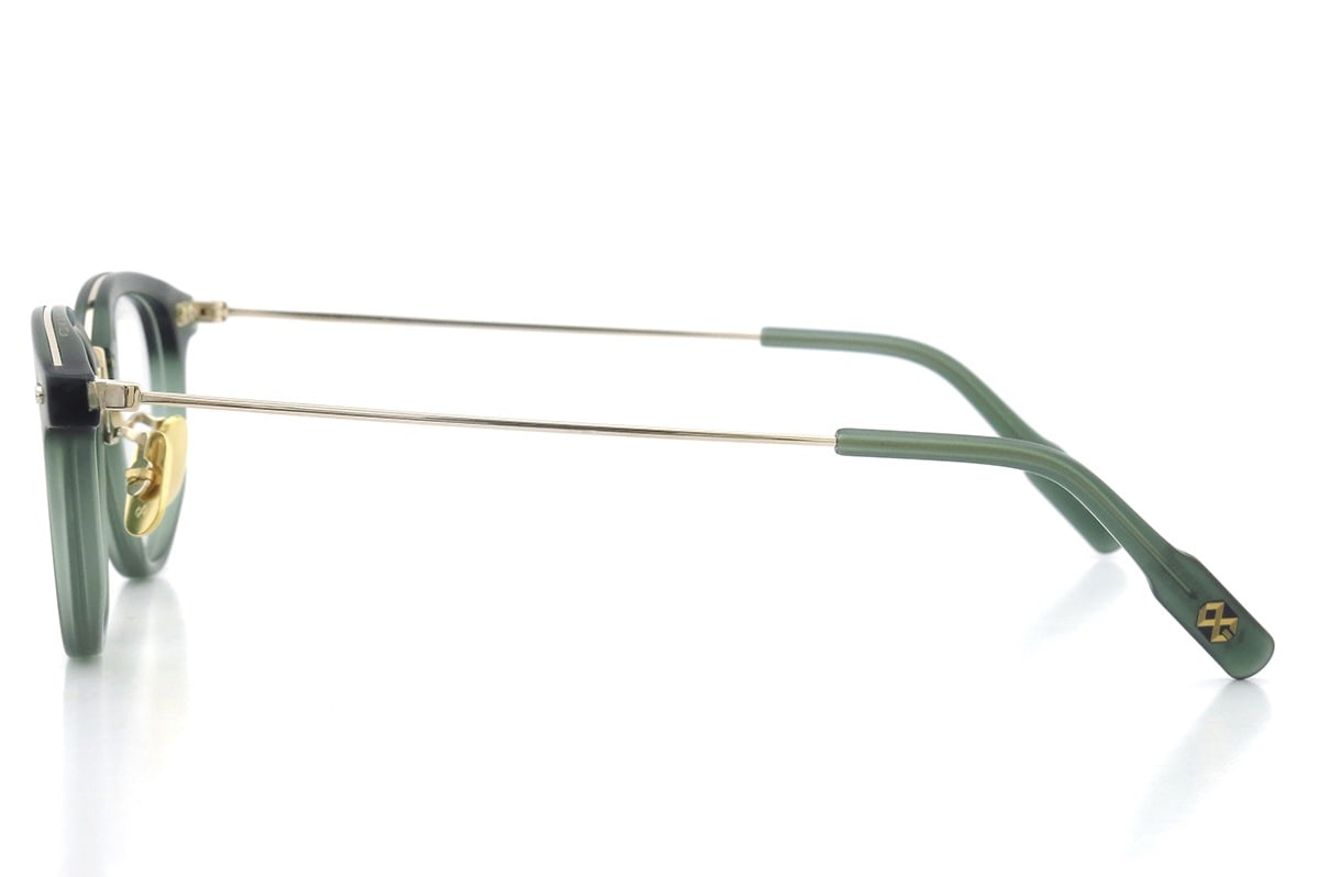 Col.114-2はアセテートがマットグリーン、メタルはゴールドのコンビネーションです。落ち着いたクラシカルなグリーンをマットで仕上げることで、キツい印象を与えないようデザインされています。